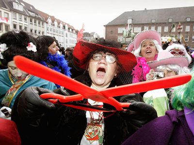 Если по улицам Германии бегают женщины с большими ножницами и отрезают мужчинам галстуки, если дети в школе мажут друг другу лицо черной краской, если по городу шествуют наряженные клоуны, принцессы, короли, бароны, то на дворе Фашинг.
